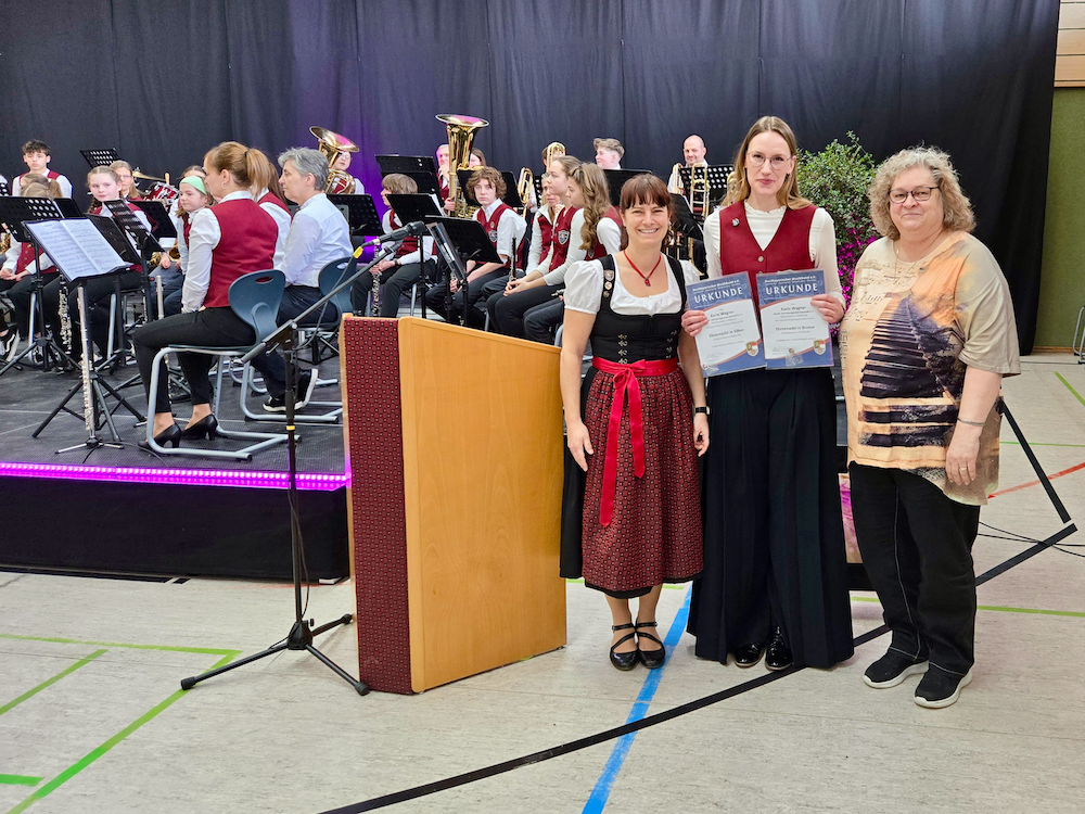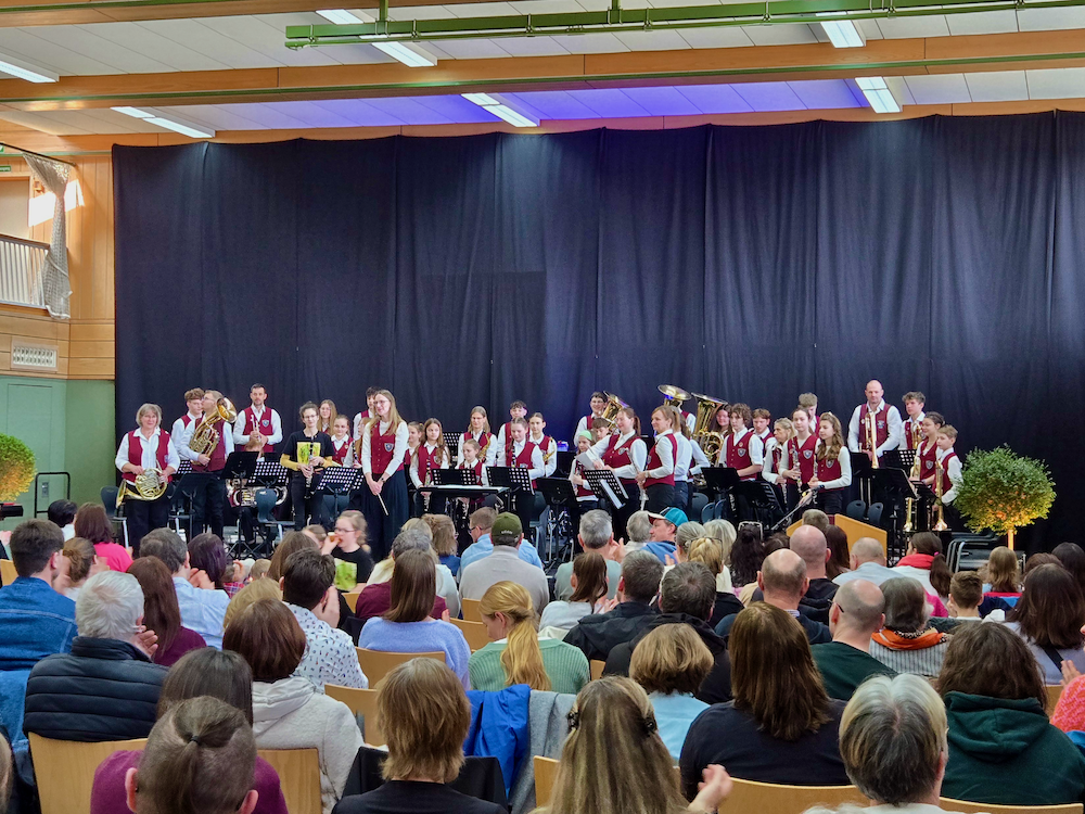 Den Abschluss des Familienkonzertes gestaltete das Jugendblasorchester unter der Leitung von Karin Wagner. Mit Stücken wie „Marching Song“ von Gustav Holst sowie „Mamma Mia!“ von Benny Andersson sorgten die jungen und junggebliebenen Musikerinnen und Musiker für einen gelungenen und schwungvollen Ausklang des Konzertvormittags. An diesem Vormittag erhielt Karin Wagner die Ehrennadel in Bronze für „10 Jahre aktives Dirigieren“ und die Ehrennadel in Silber für „20 Jahre aktives Musizieren“. Mit diesem abwechslungsreichen Konzertwochenende konnten die Musikerinnen und Musiker und Sängerinnen und Sänger aller Altersgruppen zeigen, wie lebendig und vielseitig das gemeinsame Singen und Musizieren ist. Die Konzerte werden sowohl den Mitwirkenden als auch dem Publikum sicherlich noch lange in Erinnerung bleiben.