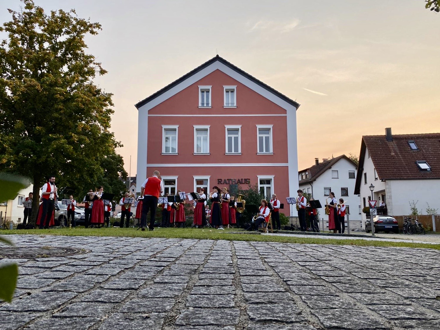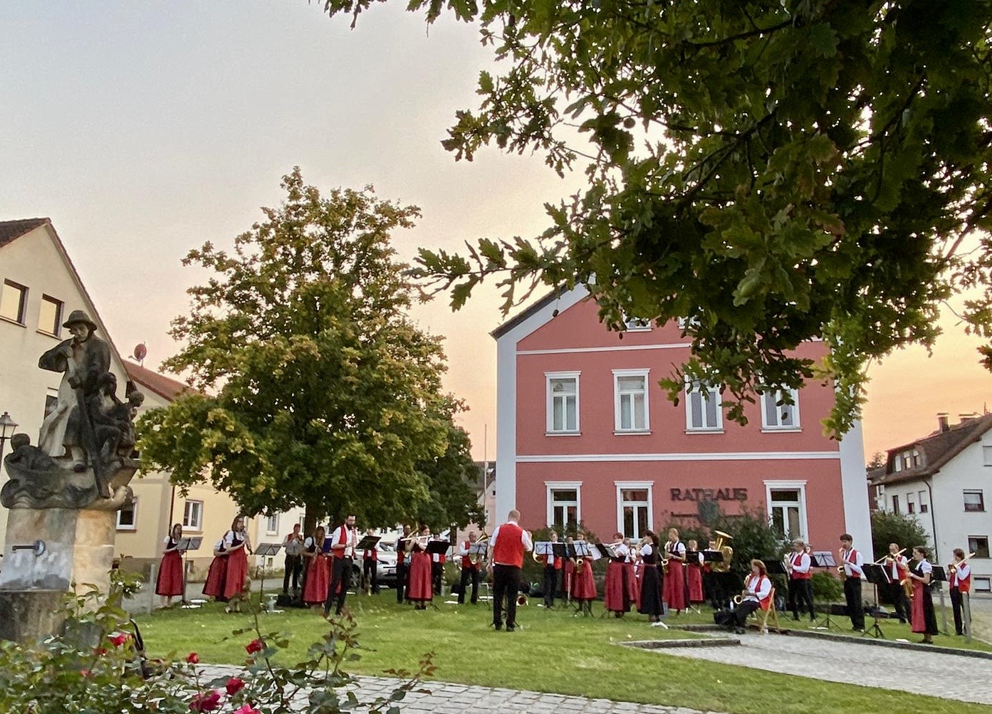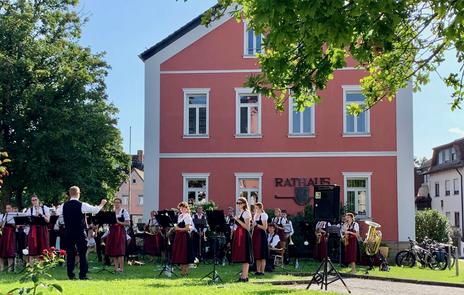 Am Samstag, den 12. September 2020, war die Blaskapelle Pettstadt nach der coronabedingten Pause erstmals wieder live zu hören. Vor dem Rathaus versammelten rund 30 Musikerinnen und Musiker der Blaskapelle unter der Leitung von Michael Saffer zu einem Ständchen in der Abendsonne.