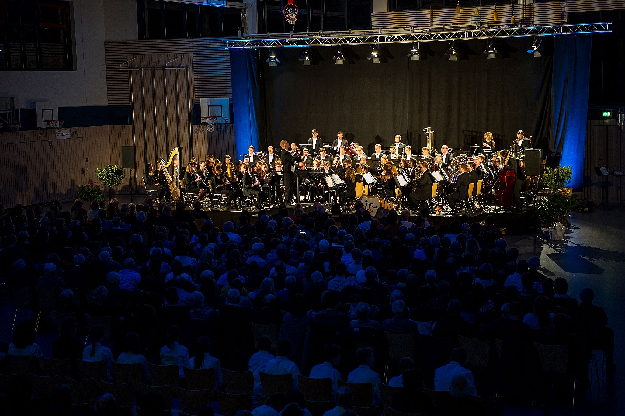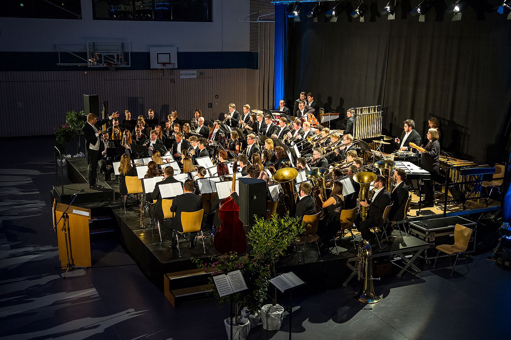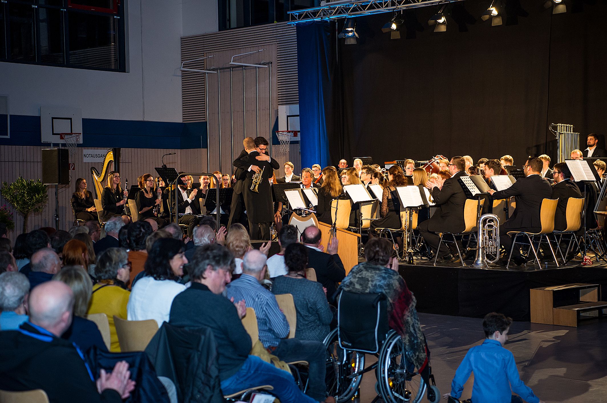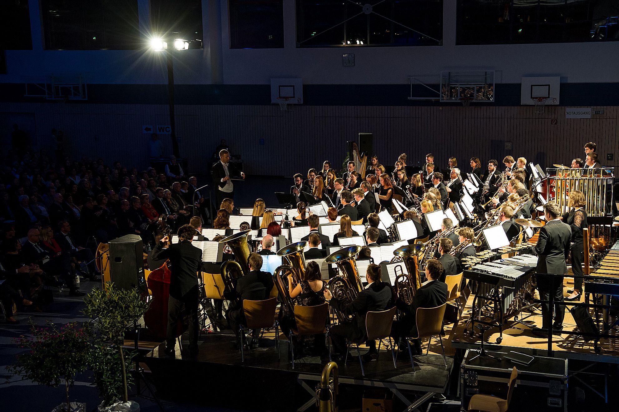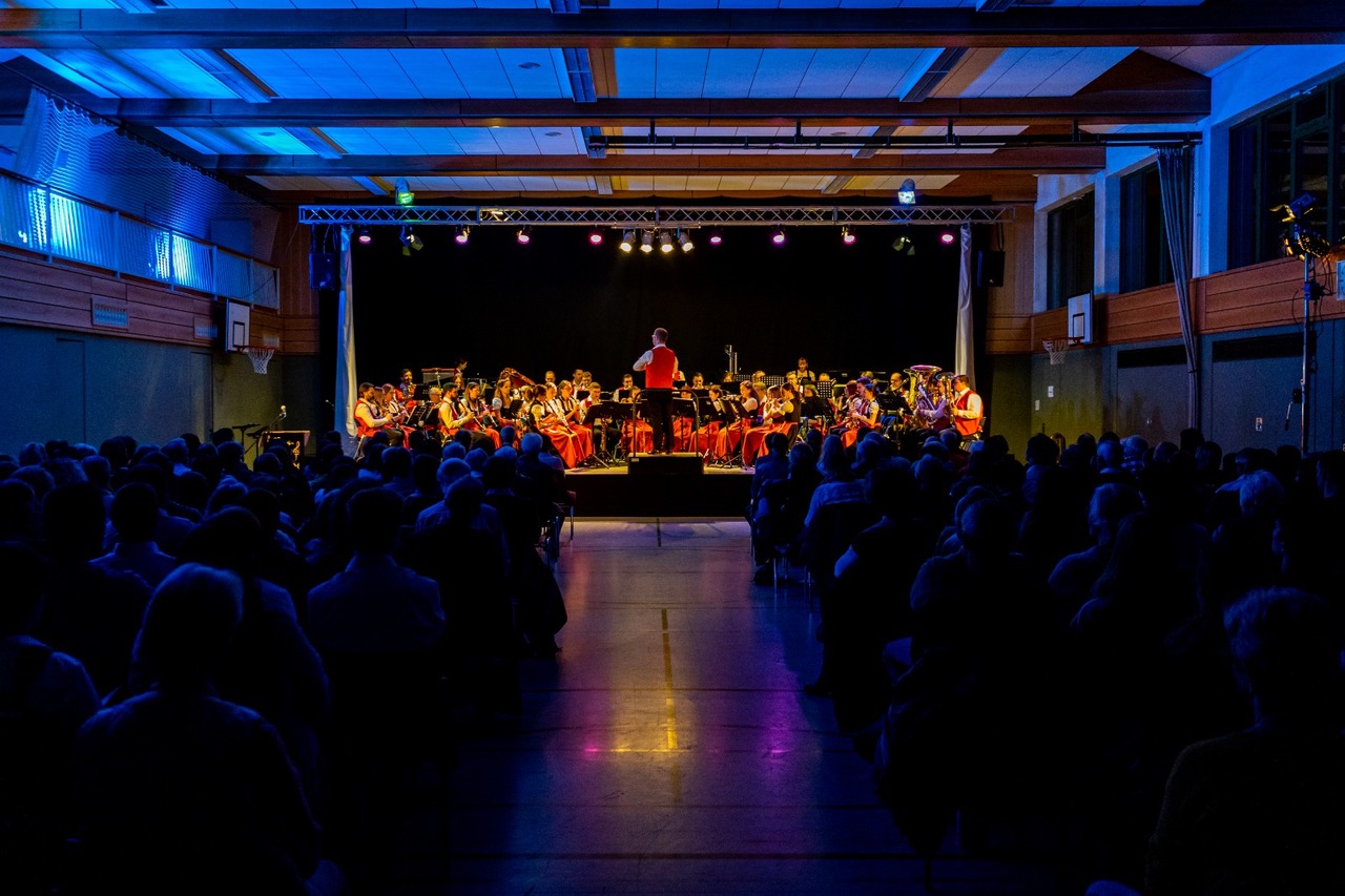 Am Sonntag, 17. November 2019, konnten die Besucher in der Regnitzarena Hirschaid Zeuge eines beeindruckenden Konzertabends werden. Michael Saffer hat die beiden von ihm dirigierten Orchester des Musik- und Gesangvereins Pettstadt und des Musikvereins Zeegenbachtal zu einem Projektorchester vereint um in einem öffentlichen Masterkonzert sein Studim der Blasorchesterleitung zu beenden. Der Zusammenschluss der beiden symphonischen Blasorchester Pettstadt und Zeegenbachtal bedeutete einen gewaltigen organisatorischen Aufwand, sowohl in der dreimonatigen musikalischen Vorbereitung, bei der gemeinsame Proben mit allen Musikern aus beiden Orchestern durchgeführt wurden, als auch hinter den Kulissen, beispielsweise bei Ausstattung der Halle und Versorgung des Publikums mit Snacks und Getränken. Bei der gemeinsamen Arbeit wurden Freundschaften geschlossen und man entwickelte sich im Orchesterklang musikalisch weiter.