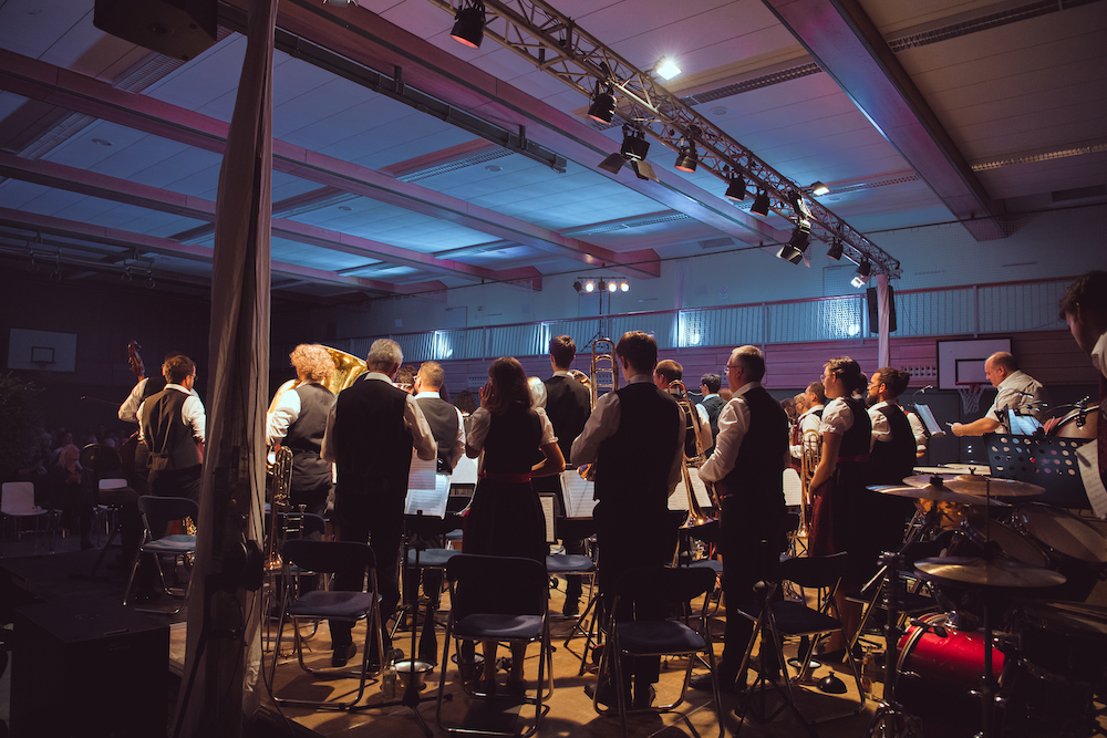 Die Unterhaltungsauftritte finden meist in Bamberg oder dem Landkreis Bamberg statt. Auf den Kerwas der umliegenden Gemeinden - wie zum Beispiel in Debring oder Friesen - „spielen wir den Baam rei“ und unterhalten anschließend das Publikum mit Zeltmusik. Dabei reicht unserer Repertoire von Märschen, Polkas und Walzern bis hin zu Medleys. Auch moderne Arrangements von Robbie Williams oder Bruno Mars stehen auf unserem Programm.
